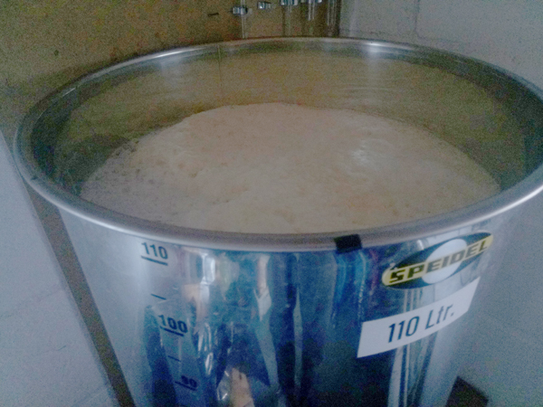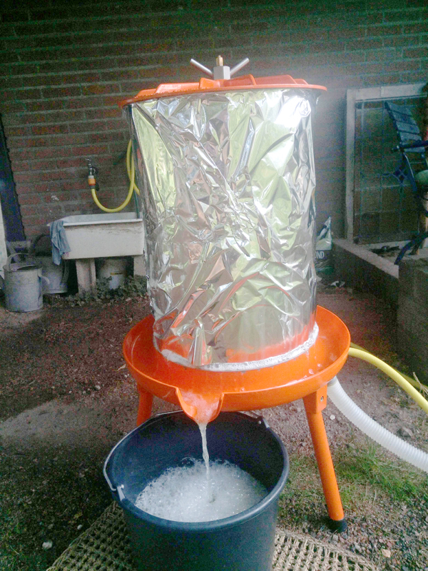 Volgende fase: klaren van de most. Daar gaat ook een nacht overheen, dus nu alvast een giststarter gemaakt, zodat straks direct na de klaring de gist aan de slag kan.