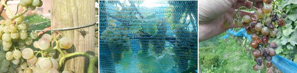 De solarisdruiven zaten al lekker vol suiker en daar kunnen wespen geen weerstand aan bieden. Met netten om de troszone lukte het even om ze nog een beetje op afstand te houden maar in de laatste week van augustus nam het aantal aangevreten bessen zienderogen toe.