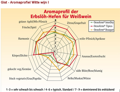 De gist is dan ook verantwoordelijk voor een volle 10 % van het resultaat van het wijnproductieproces, maar is daarbij wel verantwoordelijk voor 20 % tot 40 % van de smaak en het karakter van de wijn. Door een gist te kiezen, kies je ook een bepaalde stijl voor je wijn. Daar wordt veel te weinig rekening mee gehouden. We hebben het straks daar nader over.